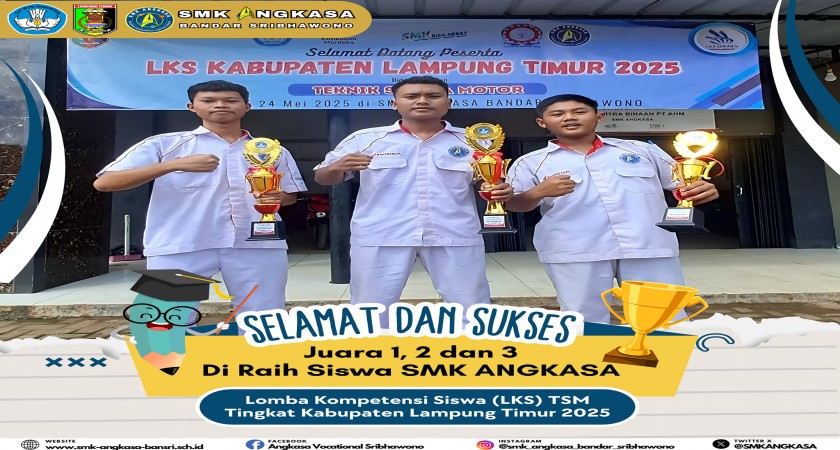 SMK Angkasa Bandar Sribhawono kembali menunjukkan prestasi gemilang di ajang Lomba Kompetensi Siswa (LKS) tingkat Kabupaten Lampung Timur. Dalam kompetisi yang diadakan baru-baru ini, siswa-siswi dari jurusan Teknik dan Bisnis Sepeda Motor (TBSM) berhasil meraih sejumlah penghargaan yang membanggakan, membuktikan kualitas pendidikan dan keterampilan yang mereka miliki.